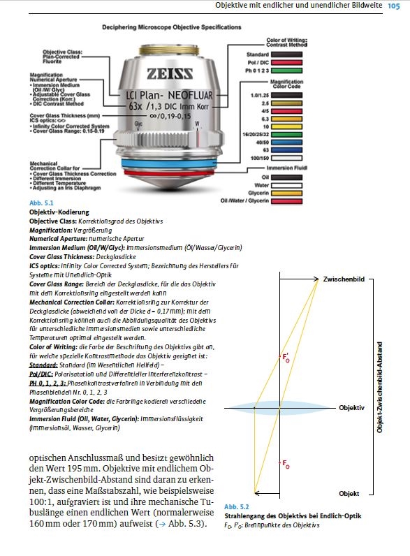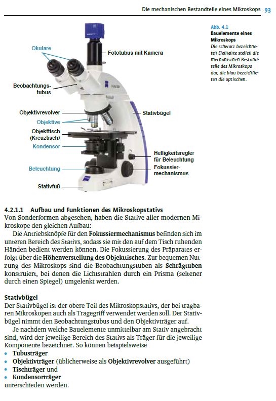 Seite 81 - 187 befassen sich mit dem zusammengesetzten (biologischen) Mikroskop in allen Facetten, die einzelnen Komponenten werden in ihrem Aufbau und ihrer Funktion beschrieben (Allgemeines, Aufbau des Mikroskops, Mikroskopobjektive, Mikroskopokulare, Beleuchtungseinrichtungen,. Einteilung der Mikroskope, Stereomikroskope und Makroskope).
