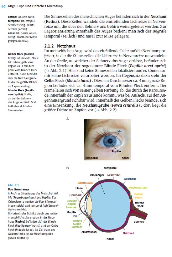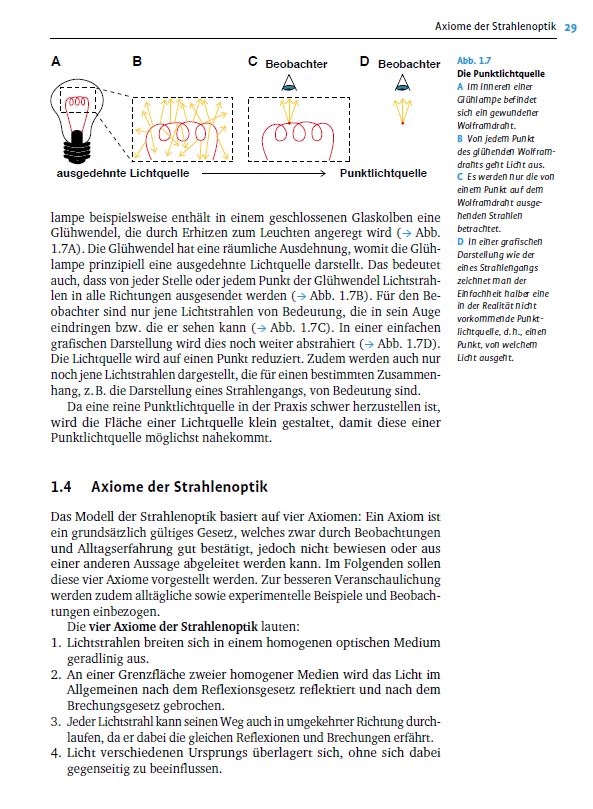 Das Buch ist didaktisch hervorragend aufgebaut und behandelt ausführlich, aber für jeden verständlich zunächst die physikalischen Grundlagen des Lichtes, des Sehens und der Strahlenoptik. Hier werden wie bei einem modernen Schul-Lehrbuch auch Experimente und Gedankenexperimente etc. angeführt, mit deren Hilfe man sich diese Grundlagen erarbeiten kann. Für den "Formelfreak"  ;) gibt es auch einige eingestreute Seiten, die aber der weniger mathematisch Interessierte problemlos überschlagen kann, ohne dass das Verständnis leidet. (Seite 1 - 80, Optische Grundlagen, Strahlenoptik, Auge, Lupe und einfaches Mikroskop).