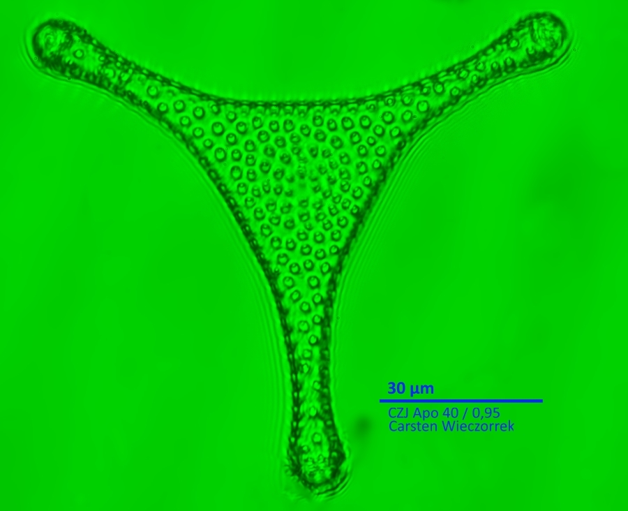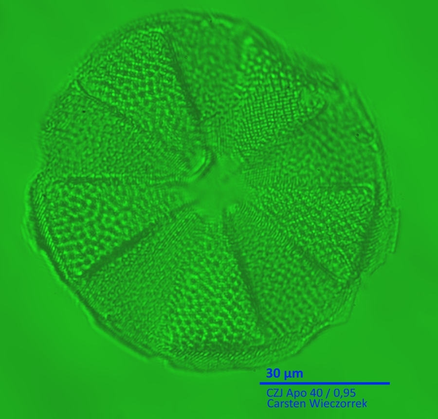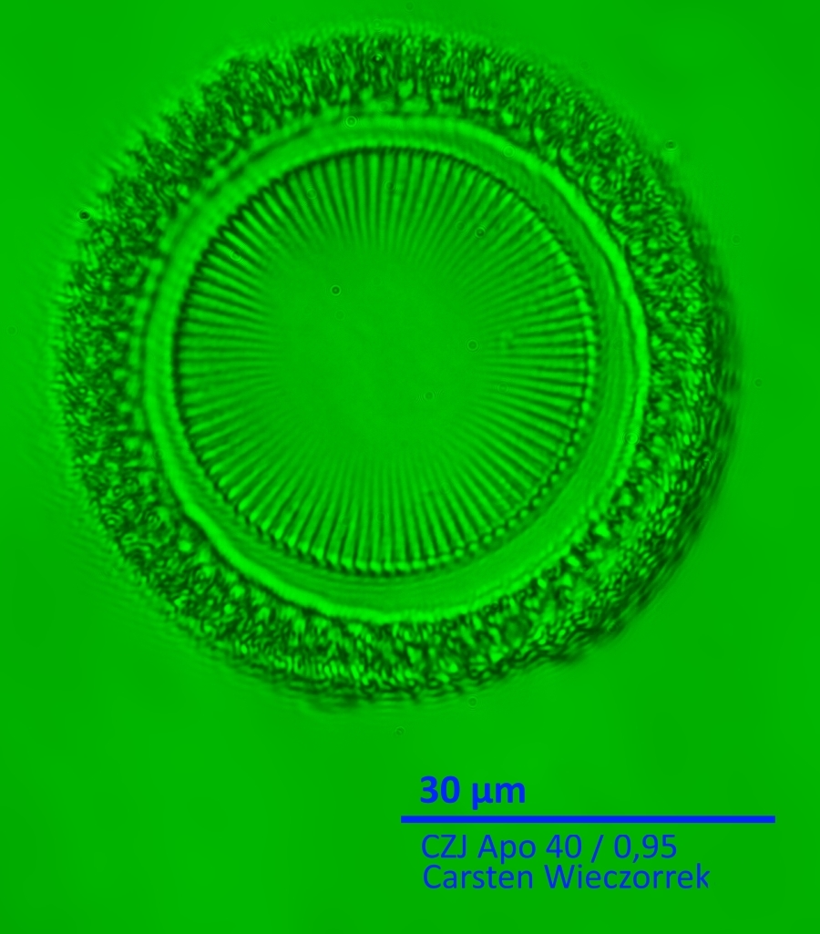 Wie im ersten Post geschrieben, war meine primäre Idee, analog dem Auflicht-Dunkelfeld einen deutlich höheren Kontrast bei z. B. Kieselalgen zu erreichen. (Was scheinbar so falsch auch nicht ist).