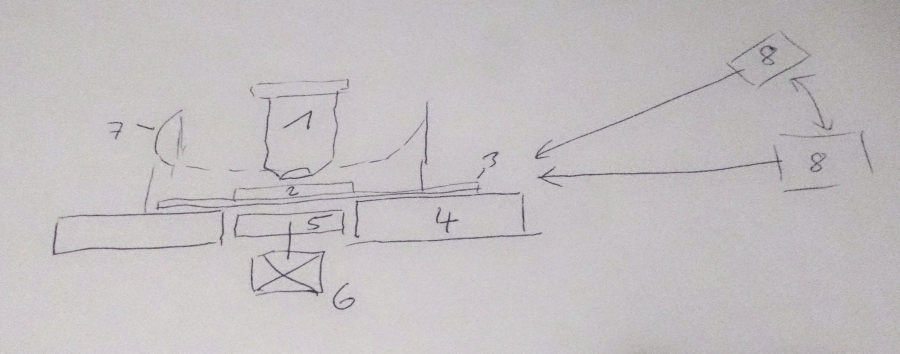 irgendwie ist es schön, wenn man ohne den Zwang, sinnvolle Sachen zu entdecken oder zu erfinden, einfach nur etwas forschen und basteln kann. Ich habe mein Laserexperiment mit folgenden Änderungen (siehe Bild 1) wiederholt.