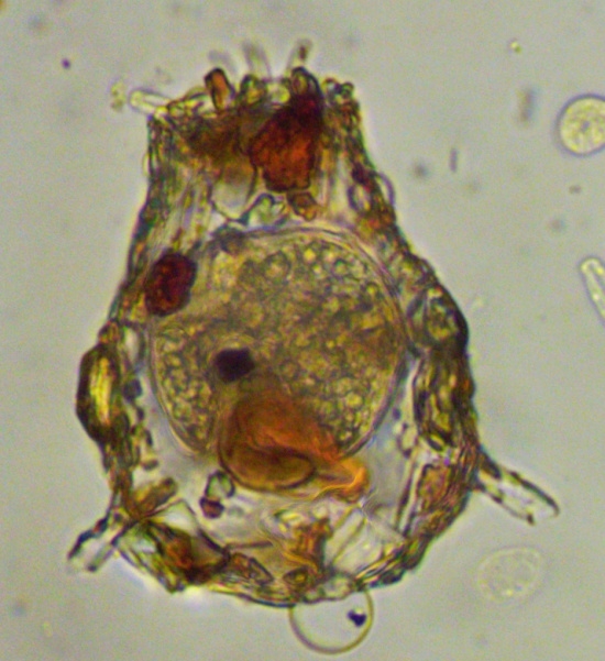 Ich wollte keine Fertigpräparate benutzen, sondern Objekte aus meiner normalen Praxis. Einzelne Schärfeebenen der 3dimensionalen rundlichen Testaceen enthalten zu wenige brauchbaren Einzelheiten, daher  benutzte ich Stacks aus wenigen Schärfeebenen.