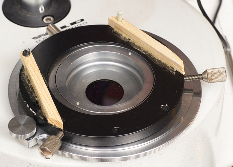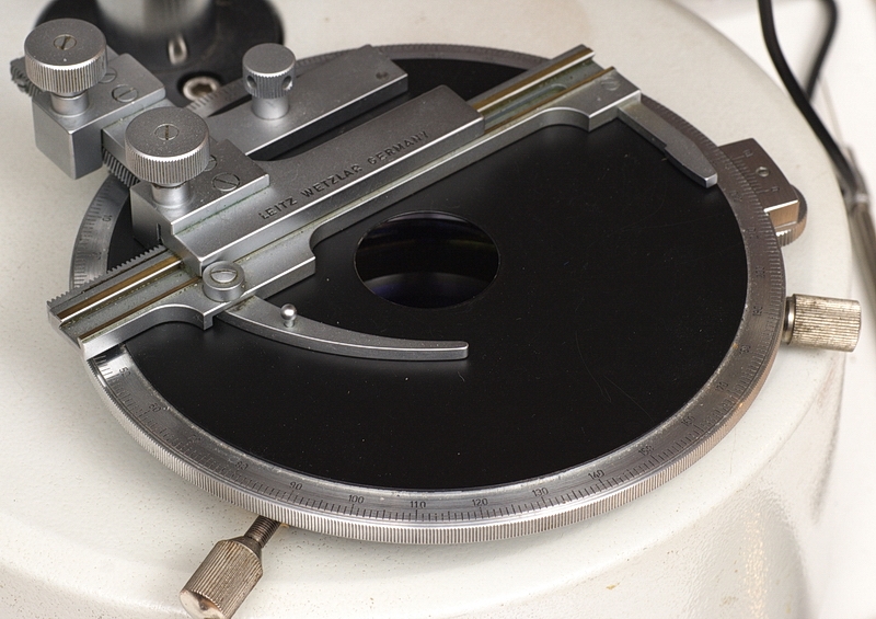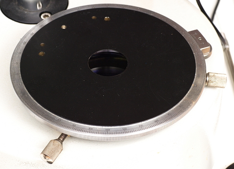 Ich habe bisher bei der Polarisations-und Dunkelfeldbeleuchtung mit einer starken LED-Taschenlampe + Mattscheibe oder einem DIA-Projektor 250 W