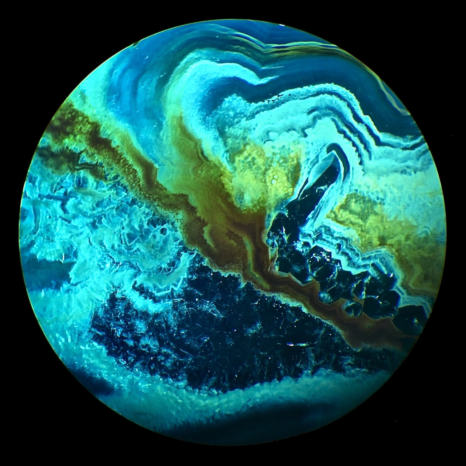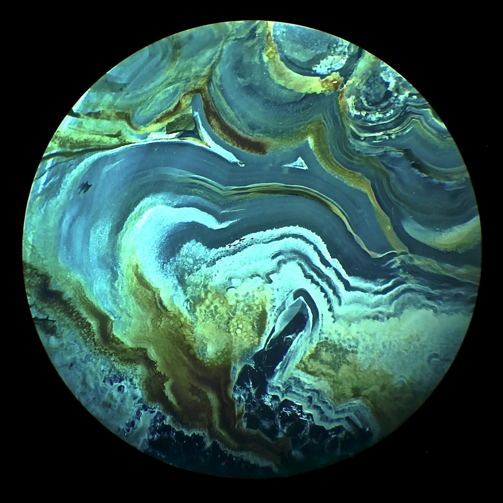 Achat d > 30 µm :  DL - POL • Obj. 1 x • VW 2 x • Sehfeld ø ? 13 mm • ISO 100 • 1 s