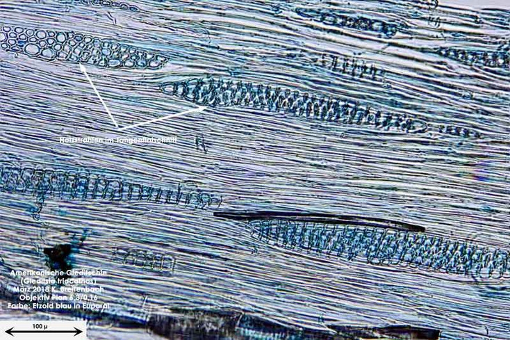 Ich hoffe die Beschriftung der verschiedenen Elemente in den Bildern ist richtig, Basis war das Buch von Bernd Miggel "Holzbestimmung mit dem Mikroskop"