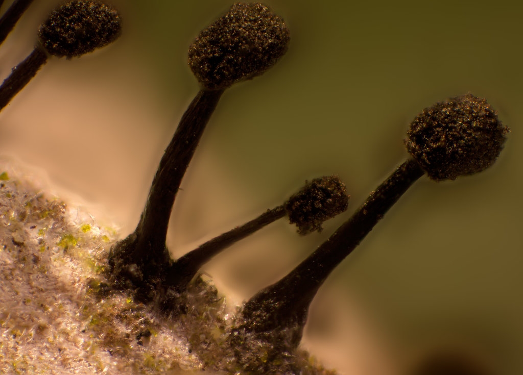 Da das Objekt gewölbt ist und die Pilze hintereinander stehen, kam beim Stacken recht viel Unsinn heraus.