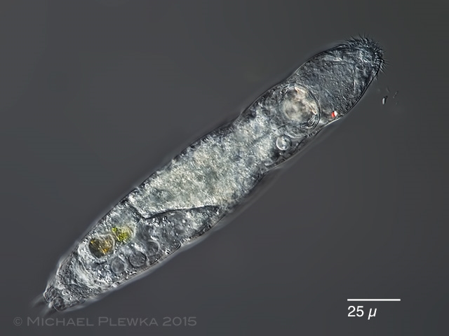 Ein weiteres Beispiel finden  wir bei dem "Schmarotzer-Rädertier" (Proales fallaciosa), bei welchem der Augenfleck nach rechts verschoben ist. Hier ein Bild: