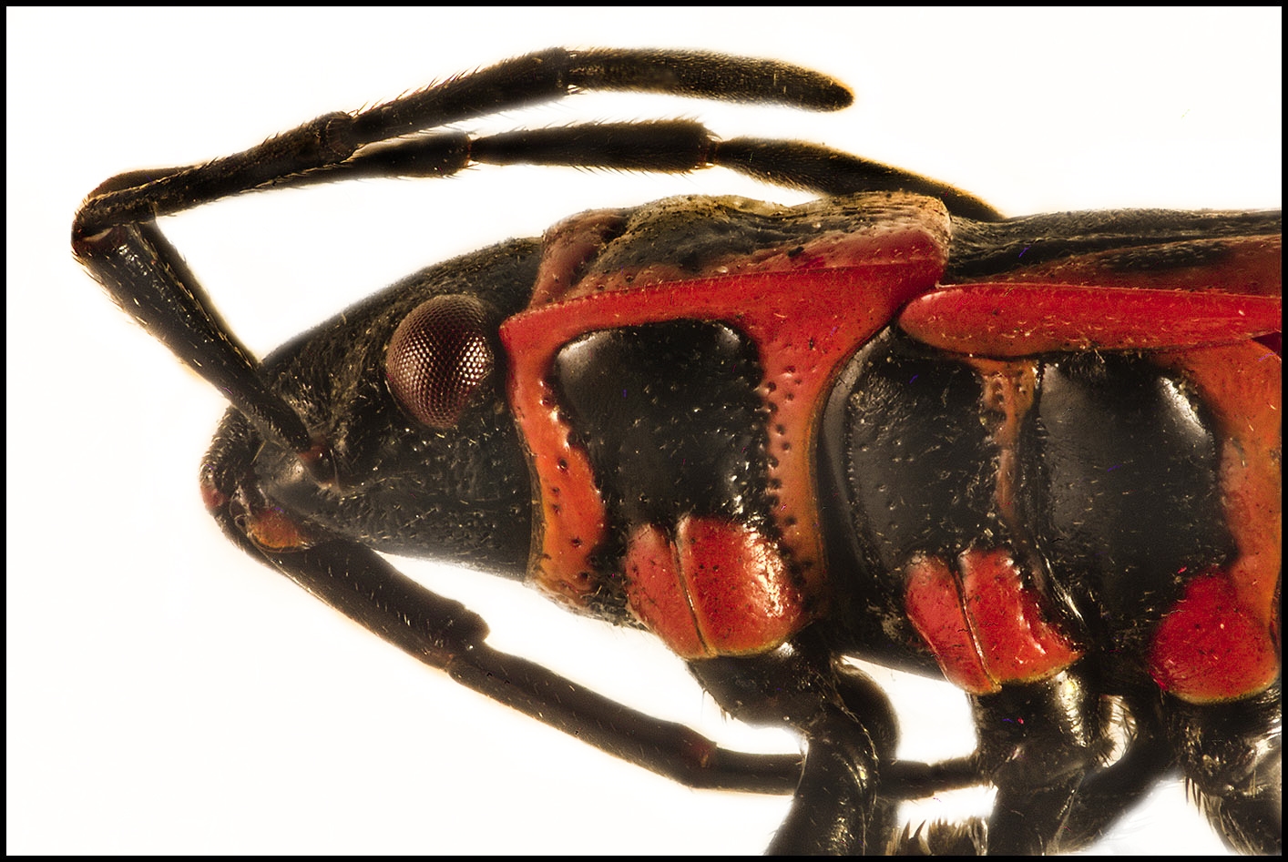 hier nun noch einmal die "Gemeine Feuerwanze" (pyrrhocoris apterus ), aufgenommen wieder mit dem Tessovar und einer EOS 5DII.