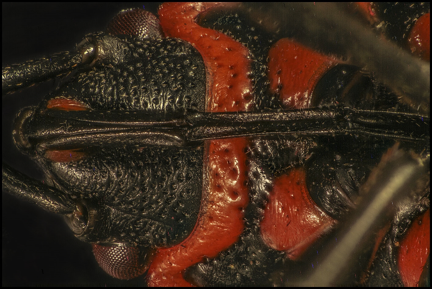 interessante Details, die Deine Fotos offenbaren. Der Sekrettropfen gefällt mir am besten. Den türkisen Hintergrund im ersten Bild empfinde ich aber irgendwie als künstlich und die Wanze wie ausgeschnitten. Mag sein, dass das daran liegt, dass am Rand der Wanze viele rote und orange Töne vorherschen und das Türkis dazu die Komplementärfarbe bildet, der Farbkontrast also maximal ist. Dazu kommt, dass bläuliche Flächen auf Grund der anderen Lichtbrechung und unserer Gehirnerfahrung vom fernen blauen Himmel immer weiter weg erscheinen, als die andere Seite des Farbspektrums.