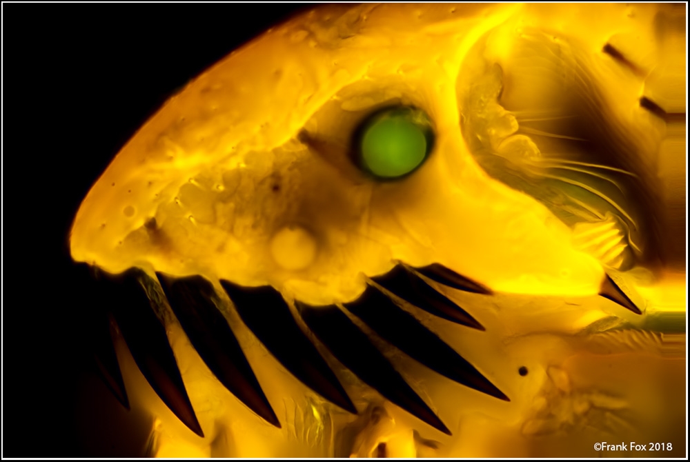 Schnell habe ich einen Hundefloh in Wasser eingebettet und im Fluoreszenz-Kontrast abgelichtet.