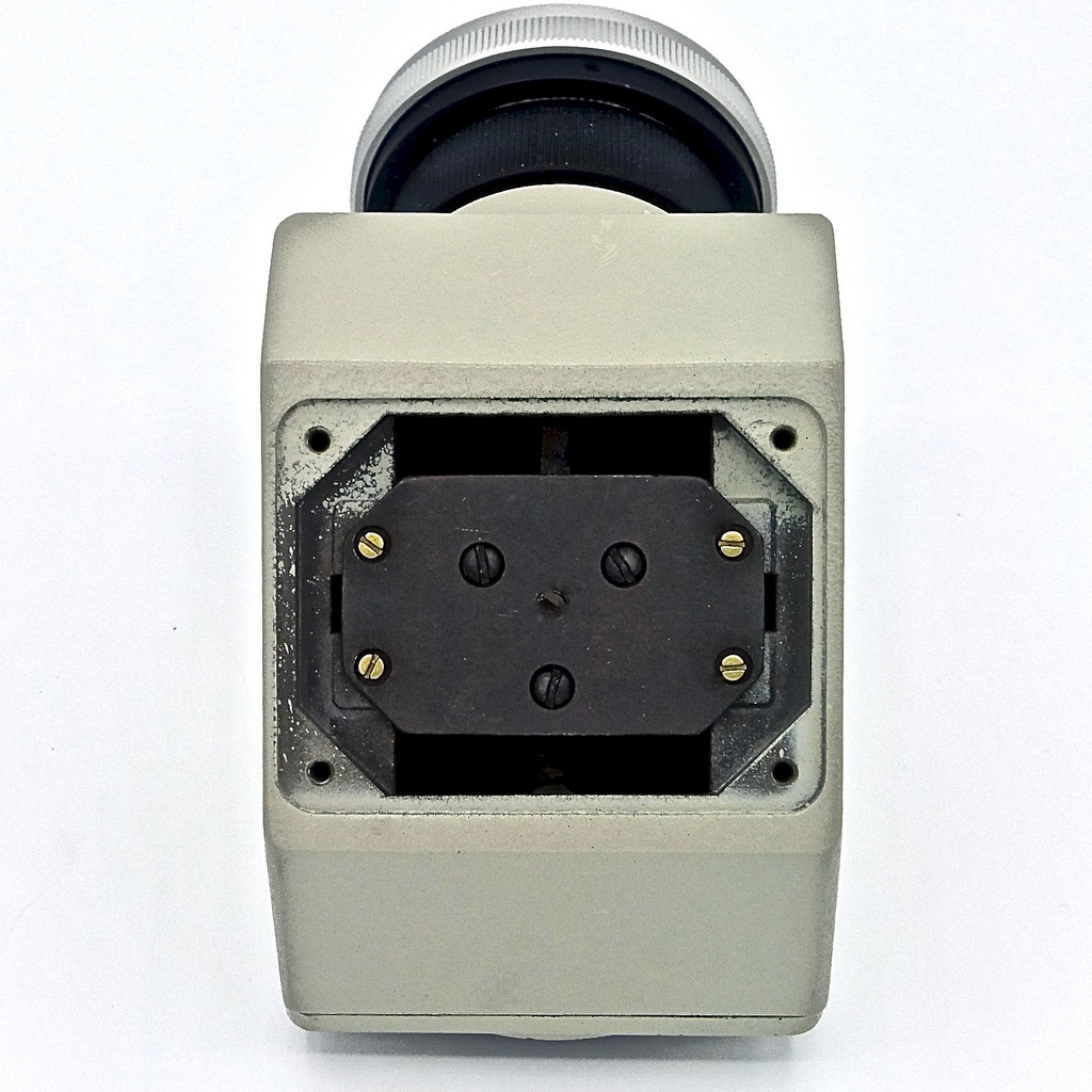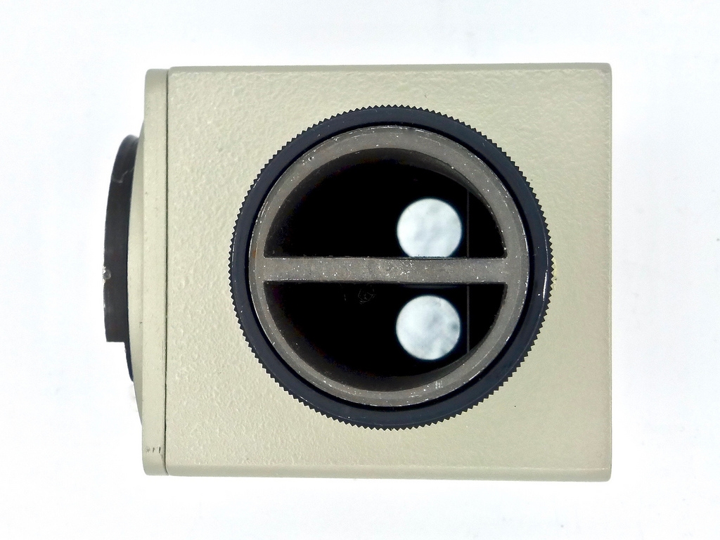Am Optikträger befinden sich beidseitig Drehknöpfe für die Schaltwalze des Vergrößerungswechslers mit Angaben der Vergrößerungen 0,6 /1 / 2 / 4 / 7 x.