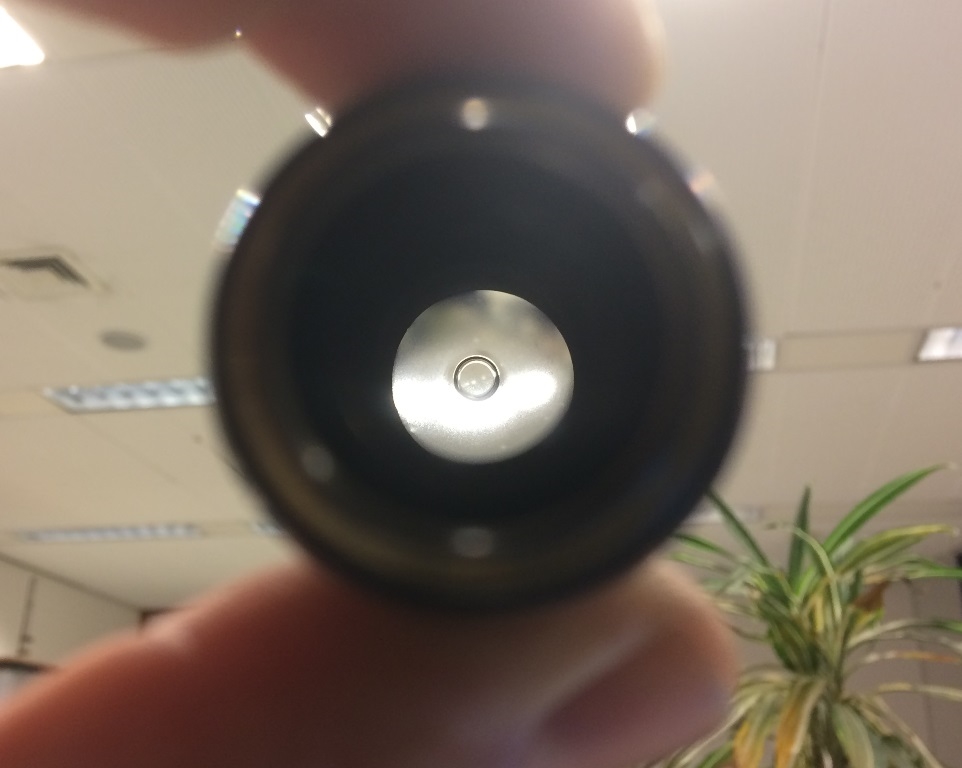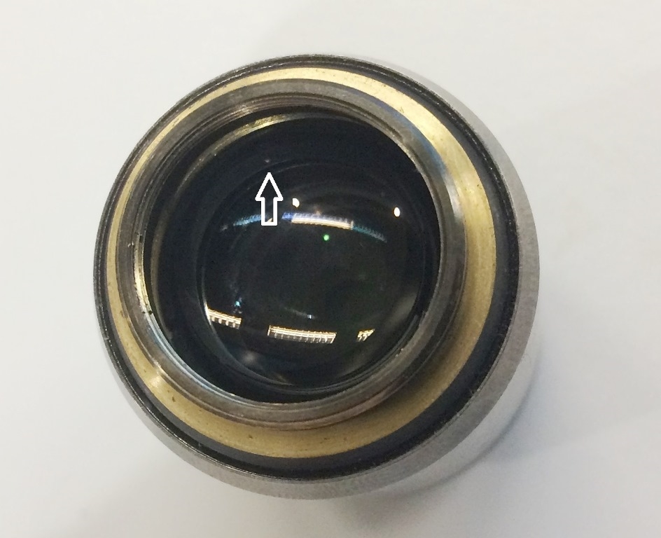 So it started of simple, screwed off the ring and removed the spring. Then it gets tricky: there's a slotted nut visible (arrow) but I have only about a mm of play between the back lens and the side. On top of that, the nut is a couple of mm below the surface of the back lens...