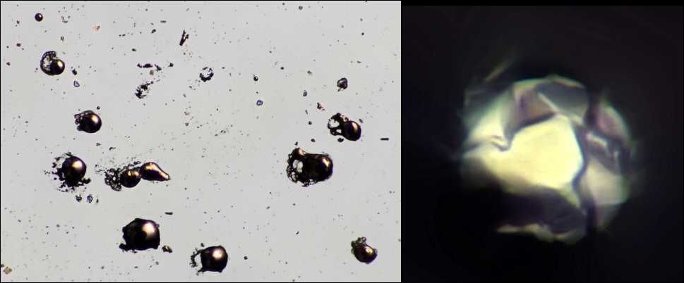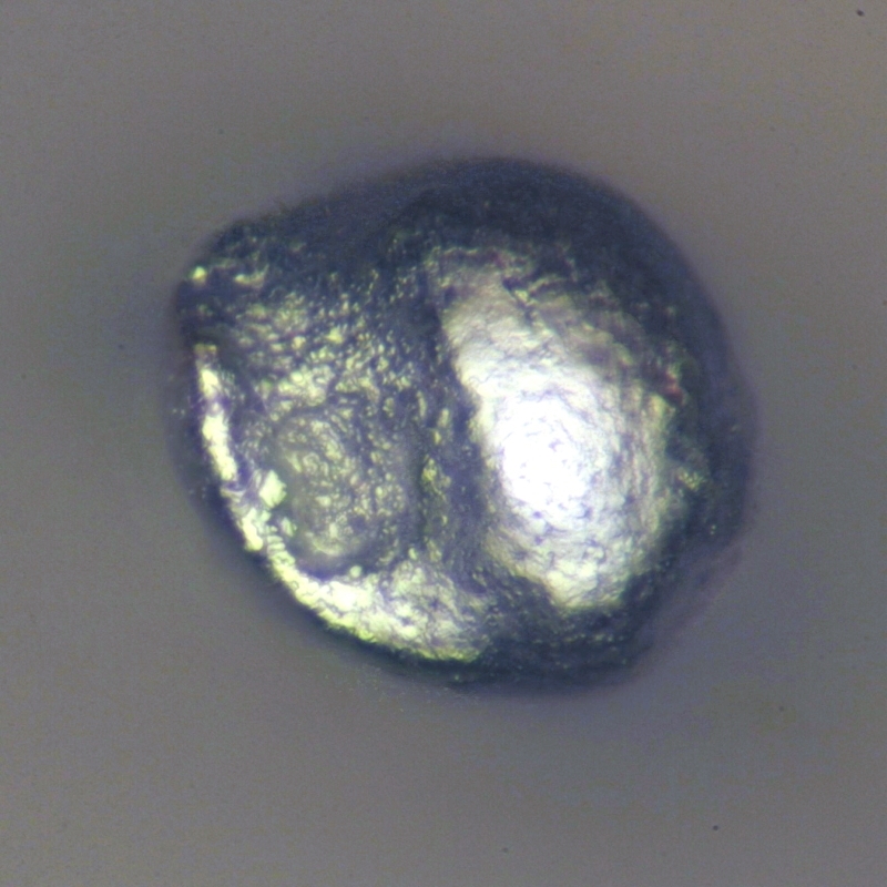 Ich habe Cereisen-Funken von einem Feuerzeug direkt auf einen OT fallen lassen. Die Kügelschen sind überwiegend unvollständig rund. scheint so, als würden die abgeschabten Späne unvollständig einschmelzen: