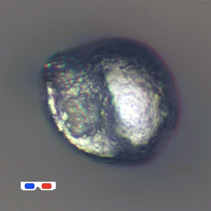 noch ein letztes Kügelchen von mir, dann ist das Thema auch bei mir wohl erschöpft. Auch dieses Mal handeltet es sich um eine beim Feuerschlagen entstandene Schmelzkugel, aber diesmal bin ich noch weiter zurückgegangen in der Zeit. Statt Stahl und Stein habe ich Makasit (FeS2) und Feuerstein benutzt. Die Funken sind sehr viel spärlicher als beim Stahl, glühen dunkelrot und man muss sie echt suchen zwischen dem ganzen Markasitgebrösel und den Feuersteinsplittern. Auch diese Kügelchen sind magnetisch.