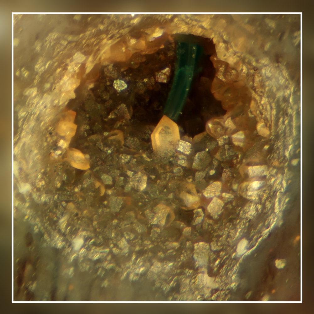 in den Rhynie-Cherts gibt es nicht nur tolle Fossilien, sondern auch Minidrusen (Bildbreite 1mm, Stak aus 135 Einzelbildern):