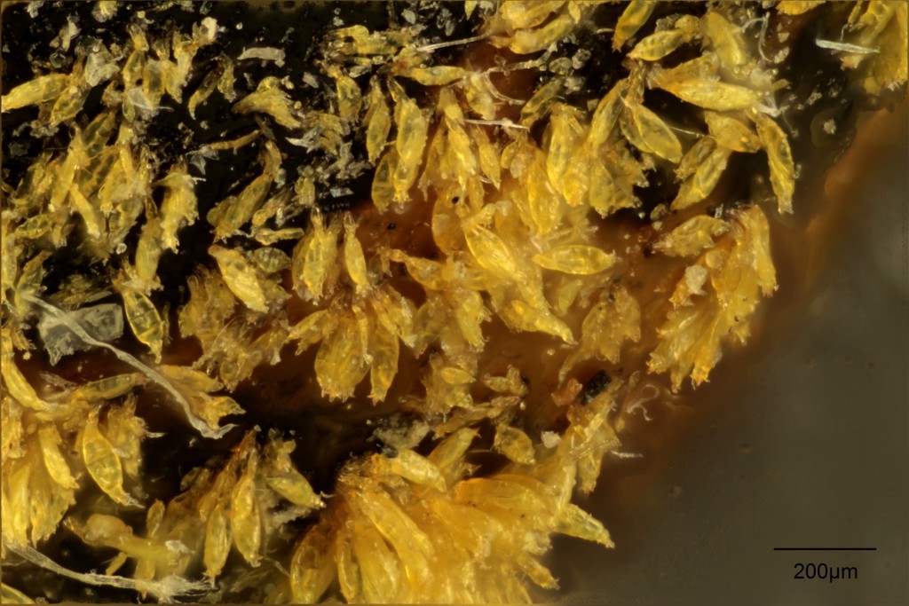 Hier sind 2 Fotos im Hellfeld, die Strukturen links dienen offenbar zum Festheften am Untergrund: