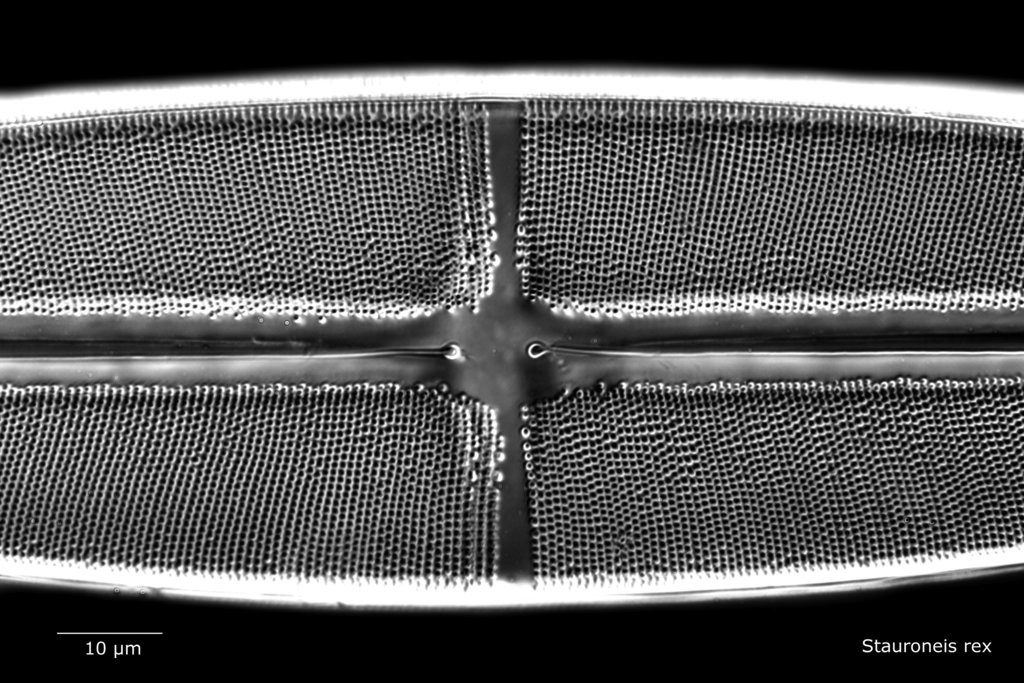 diese Stauroneis rex ist eine recente Diatomee des Süßwassers und stammt aus der Sammlung von Helmut Ullrich.