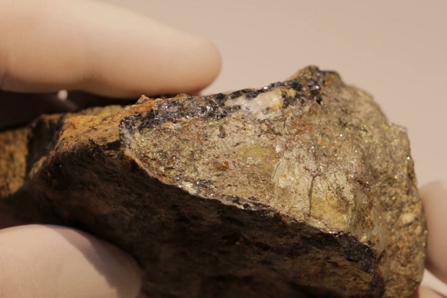 Auf dem Photo sieht man zum Vergleich einen anpolierten Galenitkristall auf OT.