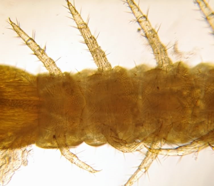 Hallo, ich möchte einige Bilder über diese wenig-bekannte Tiergruppe, die Erdläufer zeigen. Sie gehören zu Hudertfüsser und sind immer sehr lang, manchmal mit 60-90 Beinpaare. Ich sammle diese Tiere seit 2 Jahren, aber mit Bestimmung habe ich immer Probleme. Wie alle Hundertfüsser sind sie kaum von Fotos bestimmbar, man muss mikroskopische Strukturen für Bestimmung benutzen. Ich habe ein Bestimmungsschlüssel für Ungarische Hundertfüsser, und könnte damit einige Tiere bestimmen.Ich zeige jetzt ein Schendyla montana (syn Sch. tyrolensis), von Familie Schendylidae. Das Tier ist sehr klein, etwa 14 mm lang.