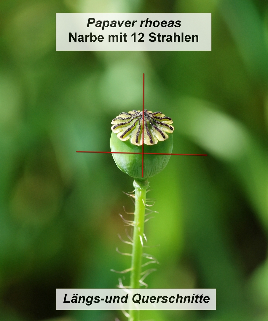 An der Zahl der Narbenstrahlen kann man erkennen, aus wie vielen Fruchtblättern er sich zusammensetzt, meist sind es zwischen 7 und 15.