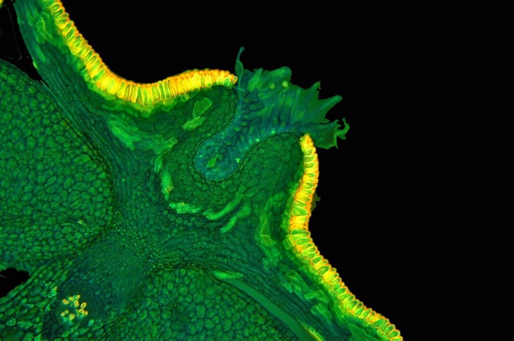 Bild 14, Fluoreszenz iLED 455 nm, Klatschmohn (Papaver rhoeas)