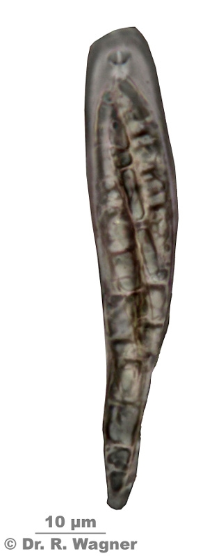 - Spore. 3-geteilt, 30-46 x 3-7 µm