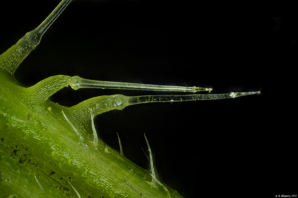 Brennnessel-Trichom. LOMO Lumam R-8 Mikroskop, EPI-Beleuchtung, stacking.