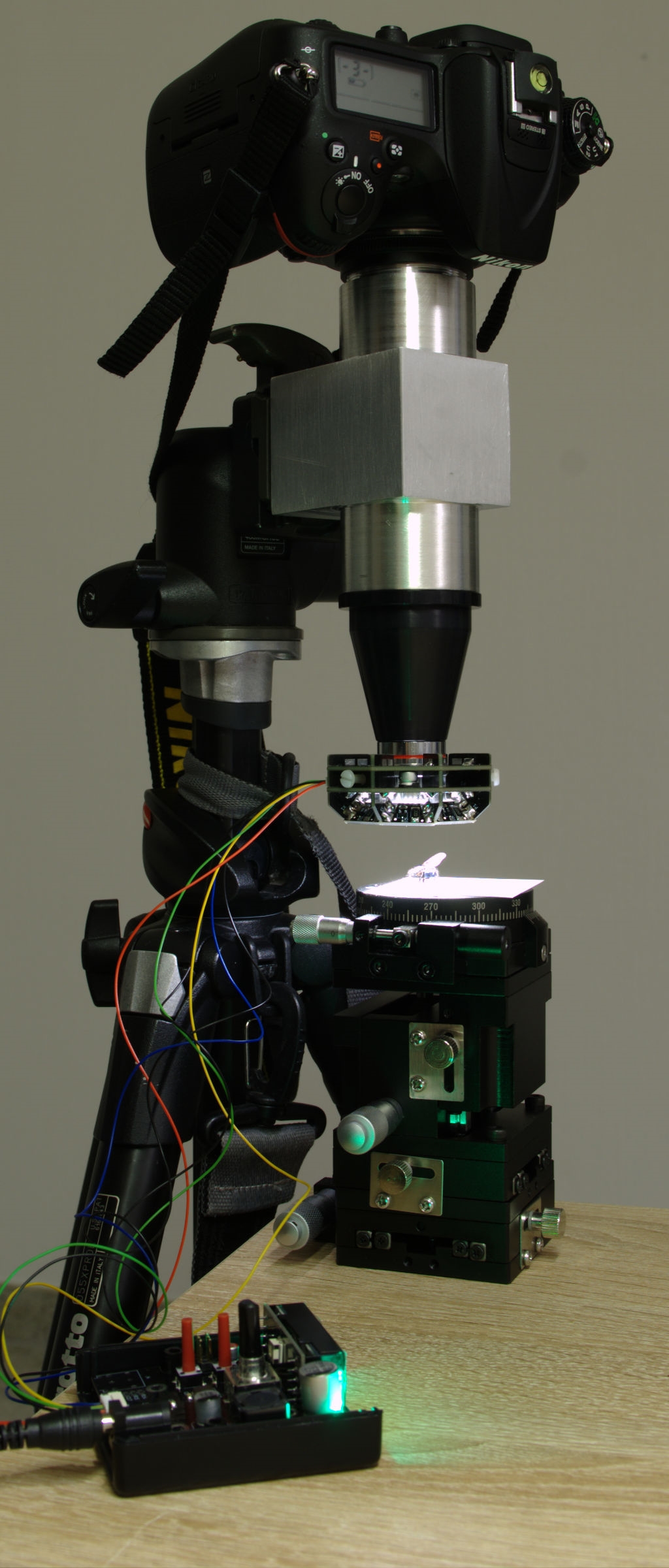 Nachdem ich lange Zeit nur mit meinem Leica S6 gearbeitet habe, hatte ich doch Lust auf höhere Vergößerungen :D. So habe ich mir zum Fotographieren mit den Nikon M-Plan Objektiven ein Ofenrohr gefertigt. Mein Interesse gilt aber weiterhin den Auflicht-Objekten. Da ich bereits für das Auflicht-Mikroskop ein Ringlicht gebaut habe, musste es nun ein passendes Ringlicht für Durchlicht-Objektive werden. Die Anforderungen dort sind aber etwas komplexer, insbesondere gibt es weniger Platz. Trotzdem sollten einzelne Bereiche des Ringlichts einzeln gedimmt werden können, um ohne Umbau-Aufwand gezielt Schatten erzeugen zu können.