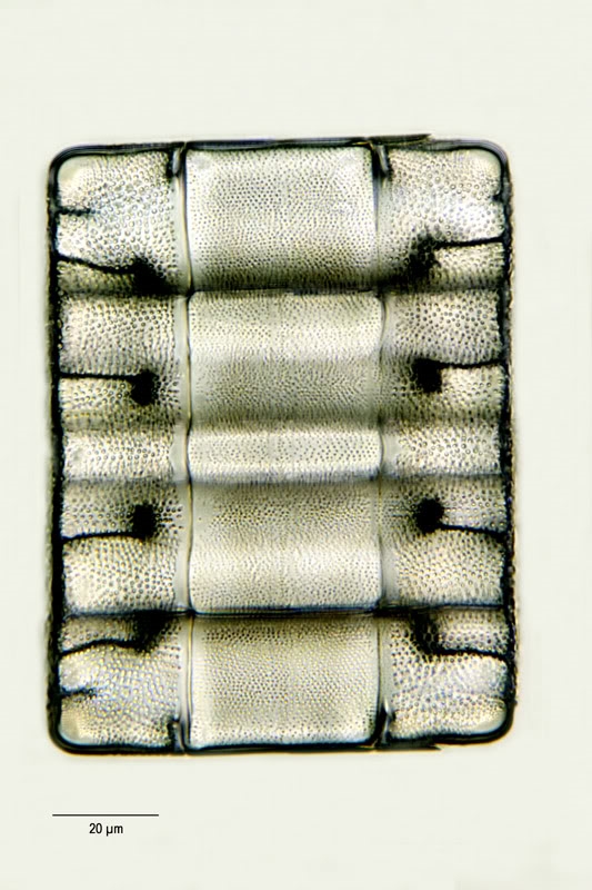 Mit der Namensgebung ist das ja so eine Sache, die nicht immer nachvollziehbar ist. Aber bei der ersten Diatomee kann ich`s schon sehen. Sie müsste eigentlich Bernhard gut gefallen. Ob es sich um eine Einzelzelle handelt, weiß ich nicht. Sie zählt aber zu den Bänder bildenden Diatomeen. Hier ein Link: