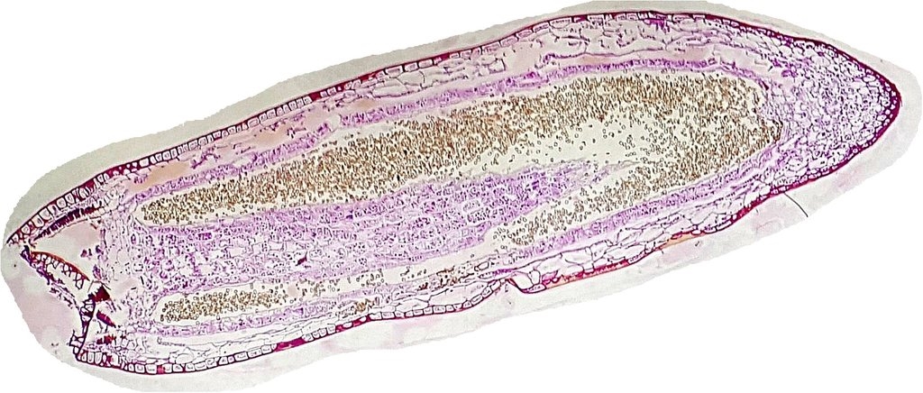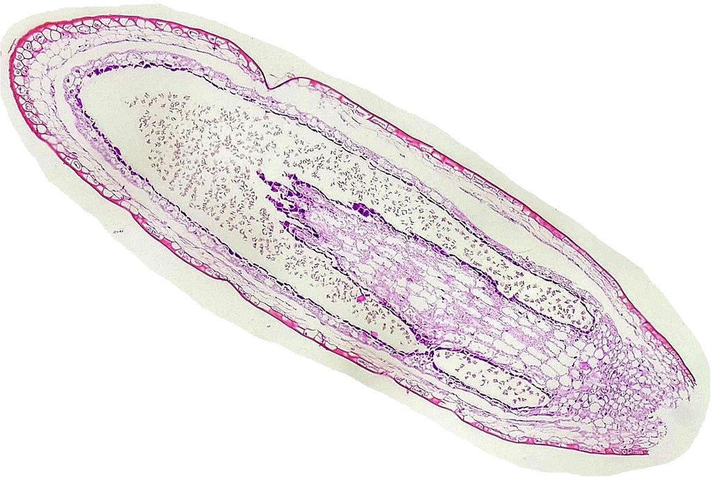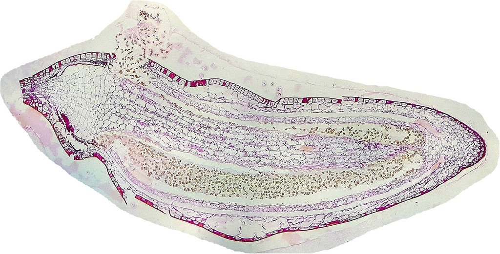 Ich präsentiere den Längsschnitt durch das Sporogon eines Mooses. Gefärbt wurde mit Hämatoxylin-Eosin und einmal mic FAC n. Etzold.