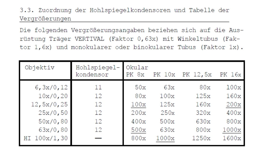 Zuordnung Zeiss Jena Auflichtkondensor-Nummer