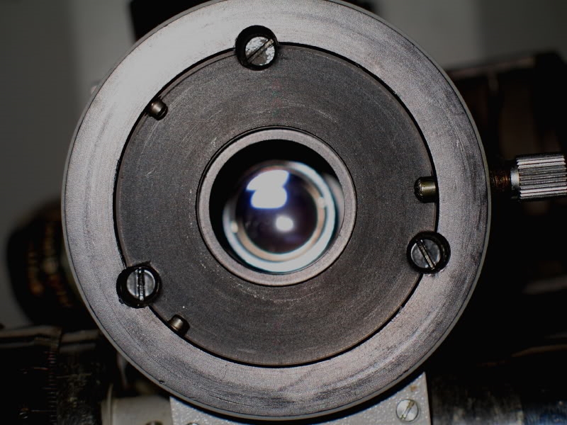 Sie sitzt zwar tief unten, aber es sieht schon nach Linse aus. Und: es ist nicht etwa die Hinterlinse des Objektivs - das habe ich natürlich vorher entfernt!