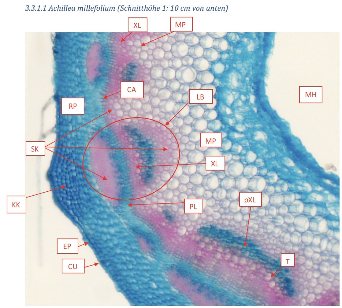 Aber im Forum finden sich Schnitte von "sirdul" aus dem Jahr 2010. Da ist m.E. auch schön zu sehen, dass es im Spross der Schafgarbe kein innen liegendes Phloem gibt: