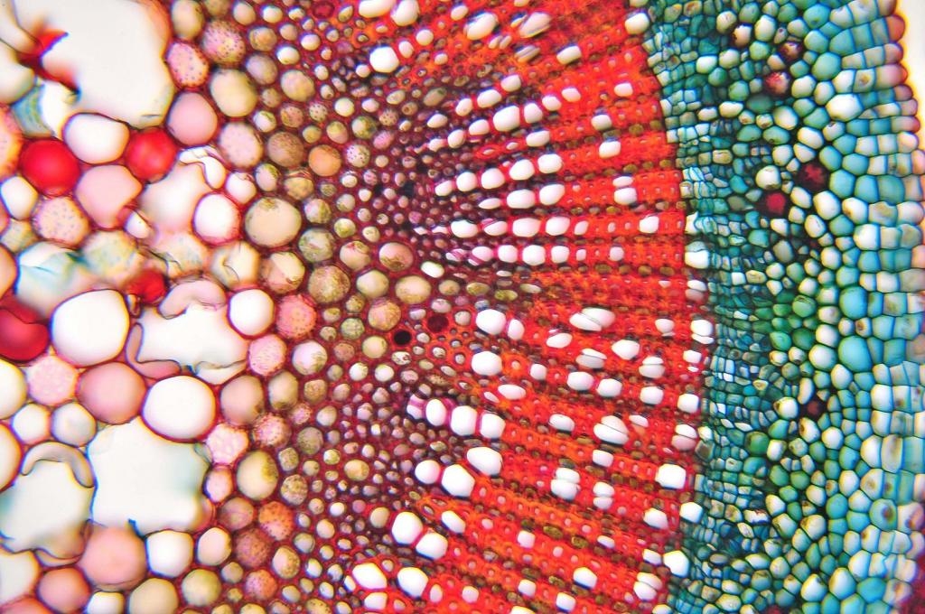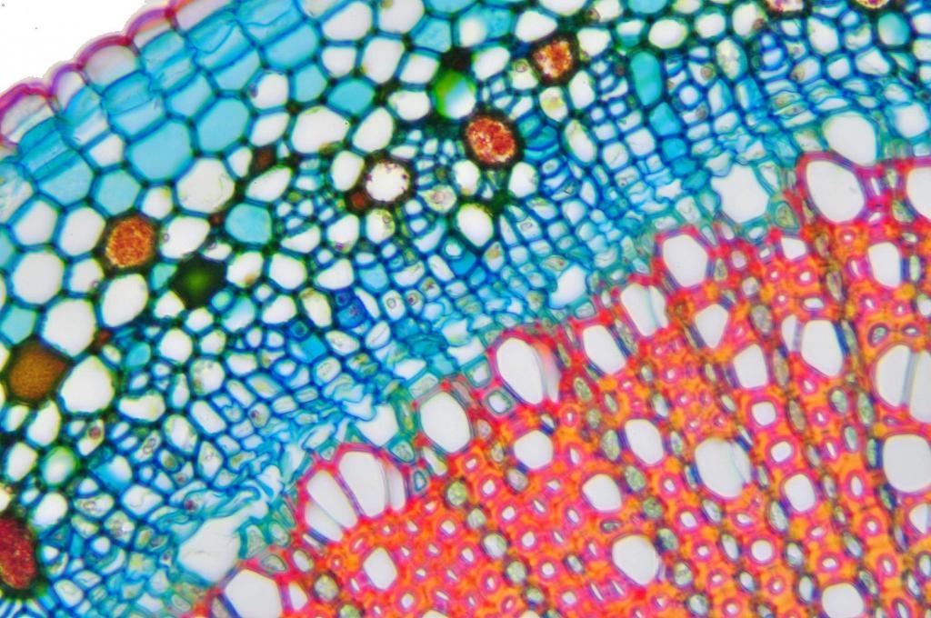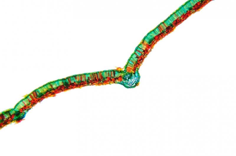 Betrachtet man den Querschnitt eines Laubblattes im Mikroskop, erkennt man mehrere Zellschichten. Die Oberhaut wird als obere Epidermis bezeichnet. Sie ist lichtdurchlässig und mit einer Wachsschicht versehen. Diese verhindert die Wasserverdunstung und stellt einen Schutz vor mechanischen Beschädigungen dar. Die darunter liegenden Palisadenzellen enthalten Chloroplasten und sind für die Photosynthese verantwortlich. Das gut durchlüftete Schwammgewebe transportiert Gase und reguliert die Abgabe von Wasserdampf (Transpiration). In der Unterhaut (untere Epidermis) befinden sich die Spaltöffnungen zur Gas- und Wasserdampfaufnahme und – abgabe aus der Umgebungsluft.