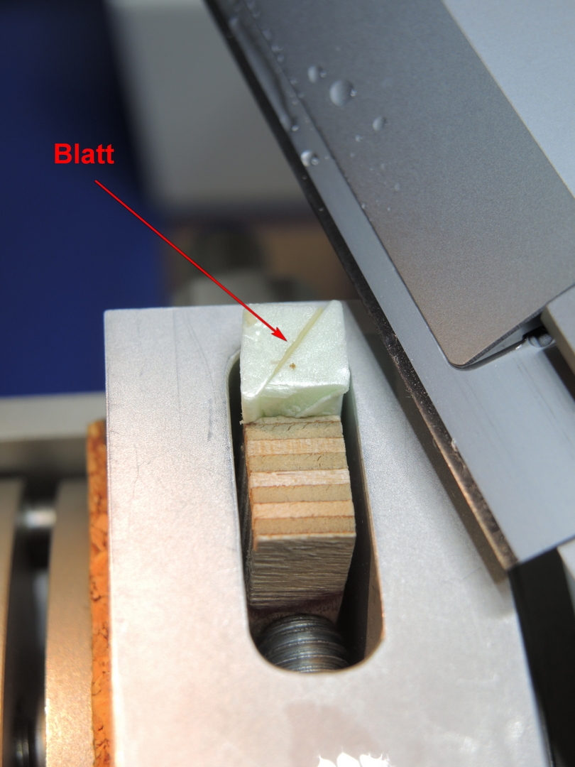 Beachte bitte die Ausrichtung der Pflanzenprobe zur Klinge.