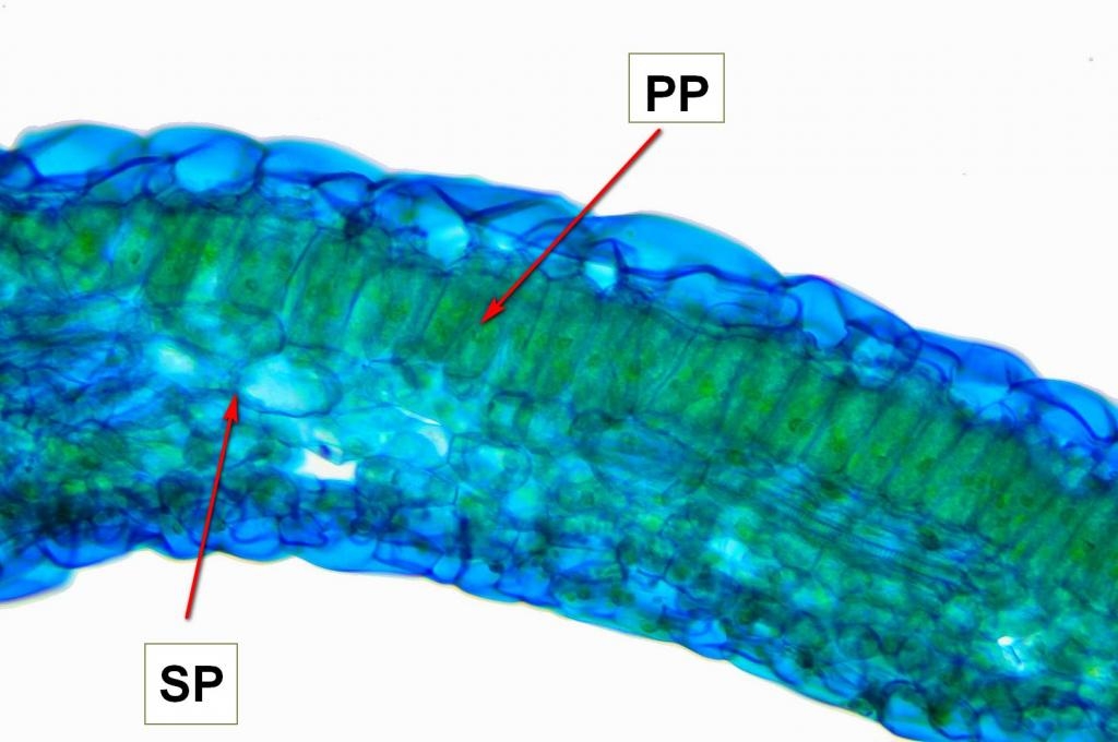 PP = Palisadenparenchym, SP = Schwammparenchym