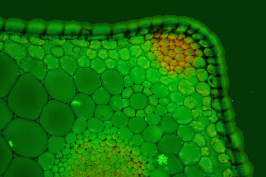 Bild 24 Auflichtbeleuchtung Fluoreszenz, Gänsefingerkraut (Potentilla anserina)