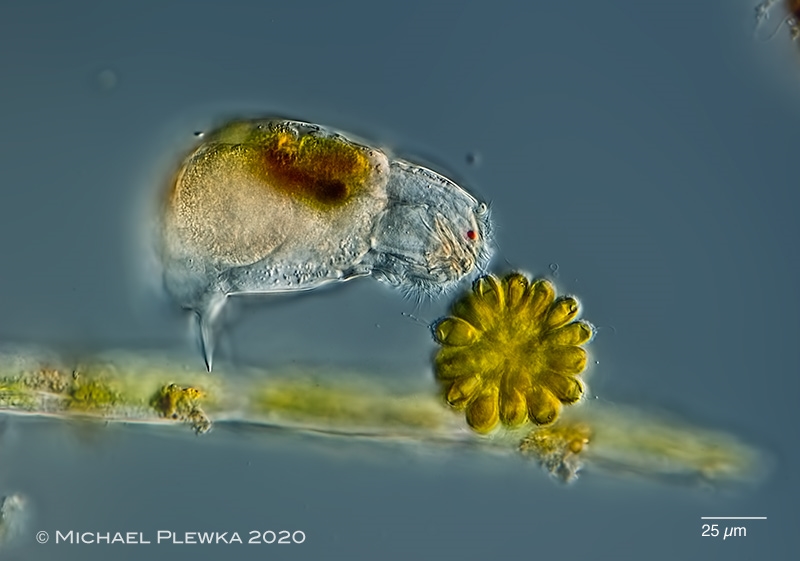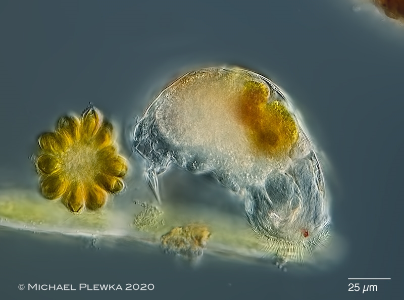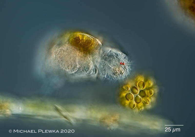 "Trotz der Corona-Krise war es den Cephalodellas aus einer Neuston-Probe erlaubt, sich frei in dem Wassertropfen auf dem Objektträger zu bewegen.