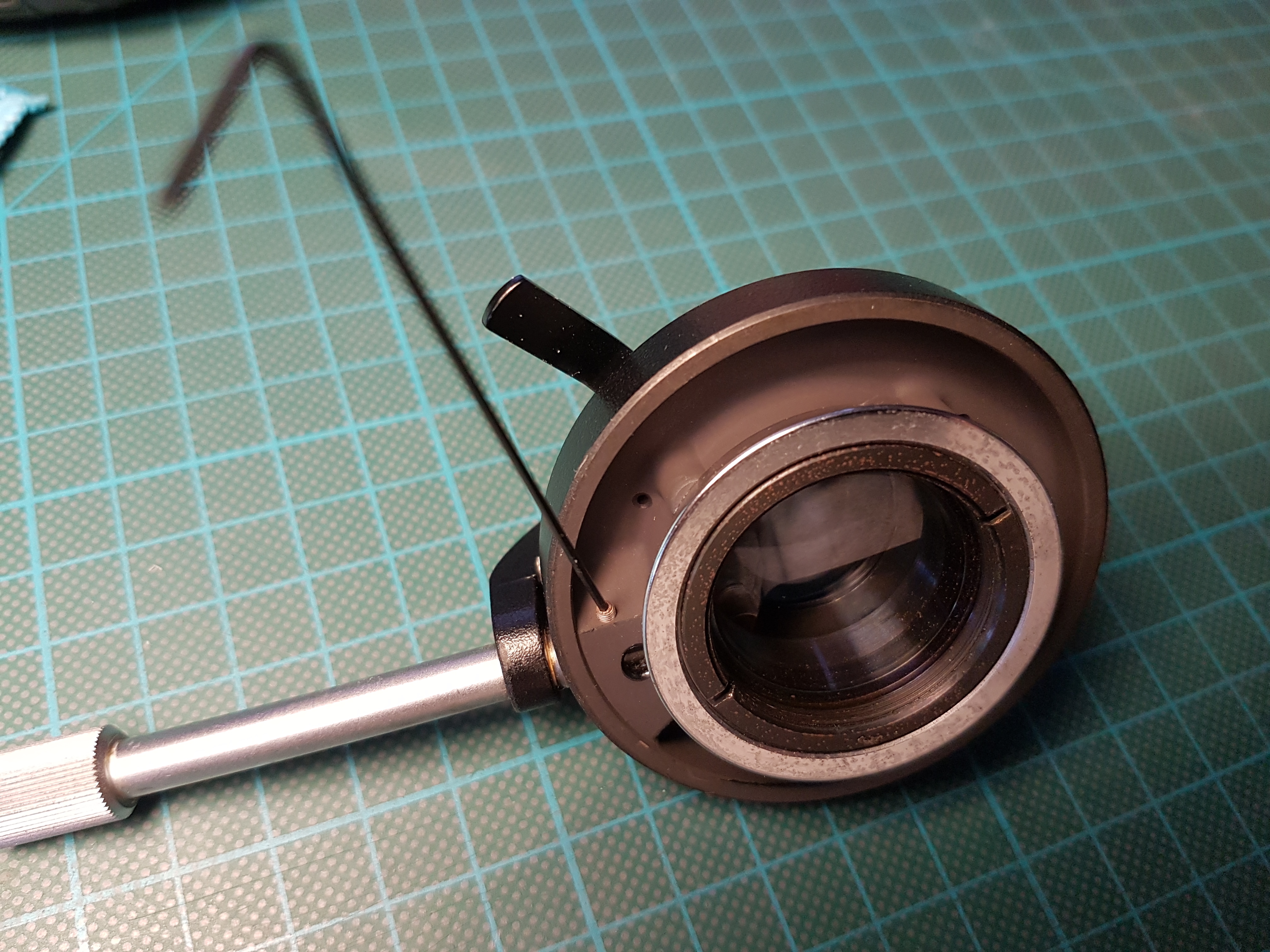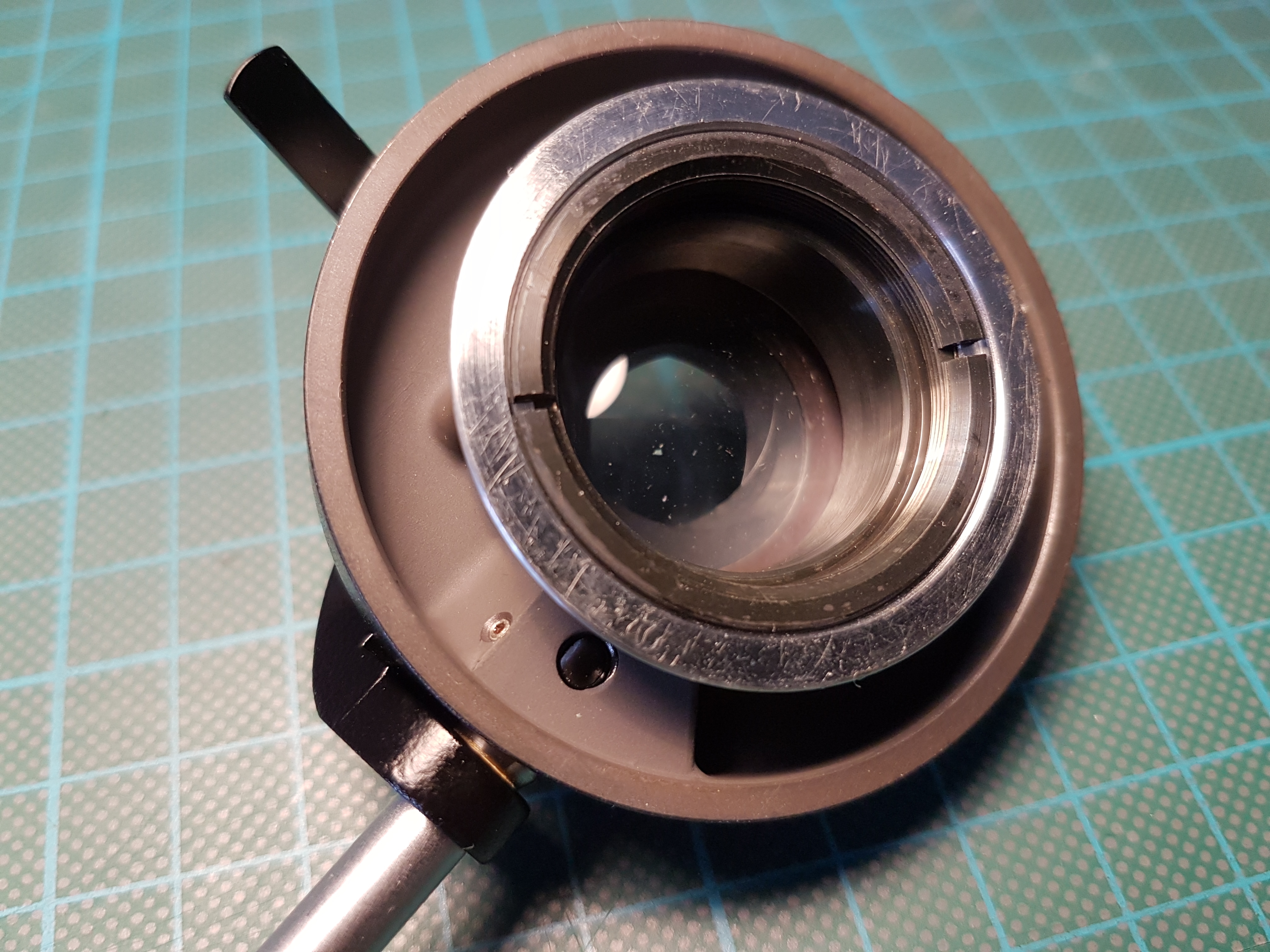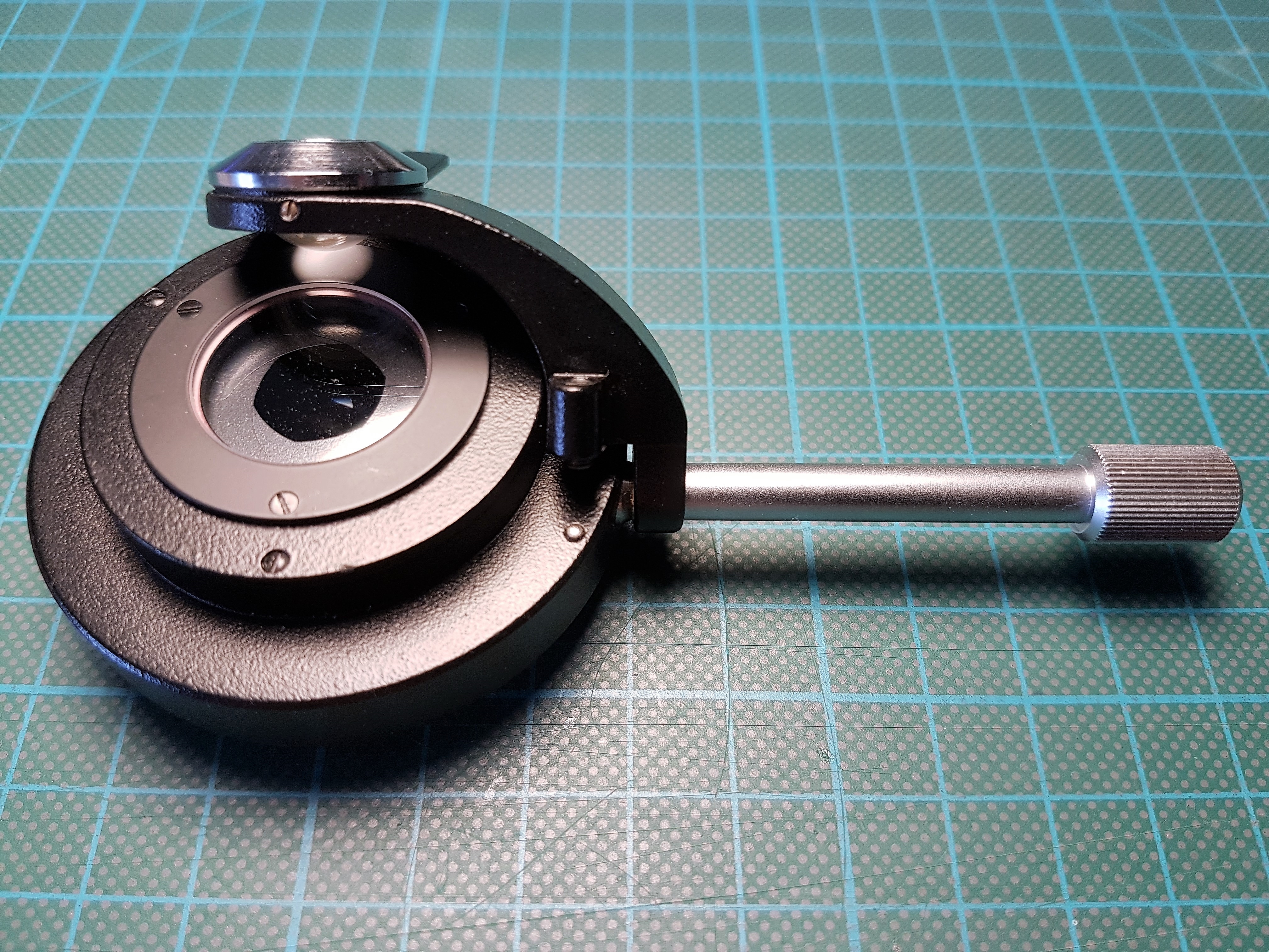und noch ein Bastelprojekt, wo ich ohne Eure Hilfe nicht weiter komme: Die Klapplinse am Kondensor geht schwer. Habe versucht, von außen mit Öl die Achse wieder leichter gangbar zu machen. Das hat leider nichts gebracht. Das Öl ist wohl nicht in die Hülse gelaufen. Würde am Liebsten die Achse herausziehen können, neu fetten und wieder einsetzten. Leider geht es wohl so einfach nicht. Hätte mich auch gewundert. Hatte mal vor langer Zeit, die Welle mit etwas Kraft heraus gedreht und damit den Kondensor zerstört. Deshalb bin ich nun in allen Dingen sehr vorsichtig geworden. Sehe auch keine Mechanik, um die Achse zu lösen. Aber irgendwie ist sie ja mal eingesetzt worden....Also bevor ich Murks mache, frage ich mal in die Runde....