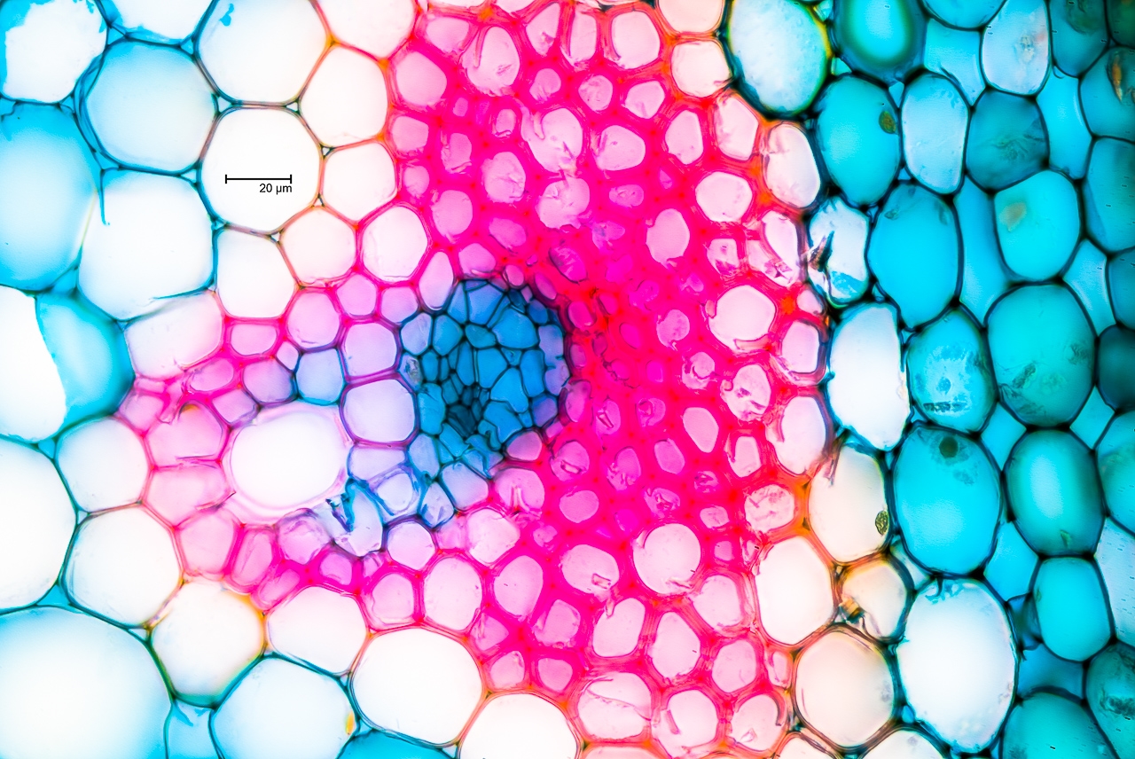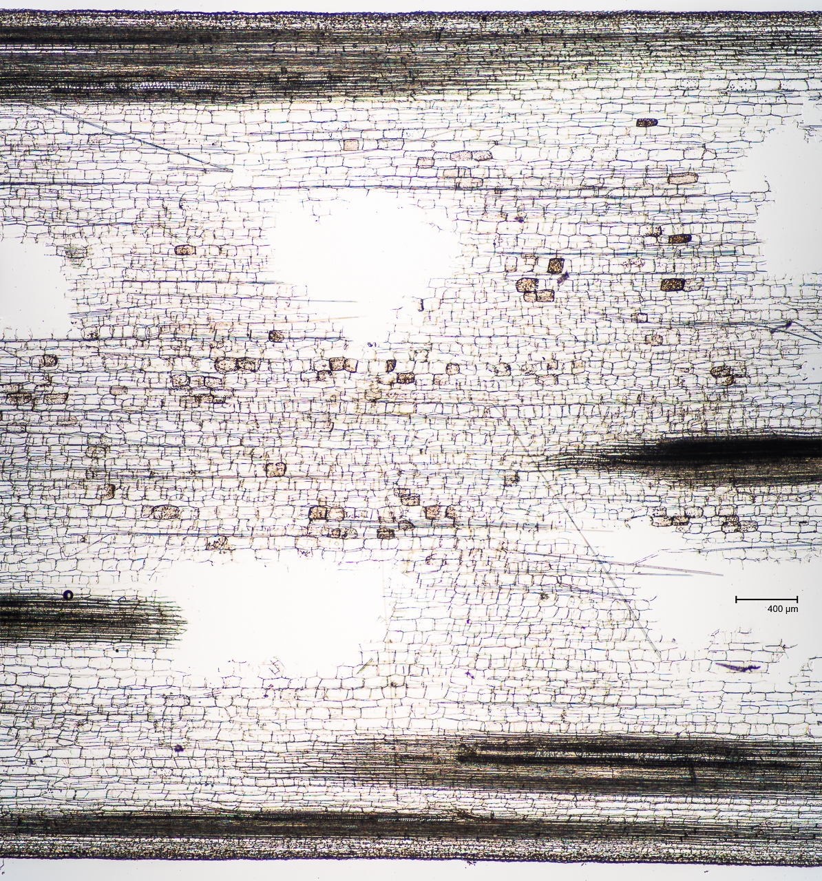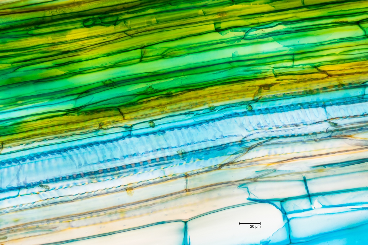 Die letzten Aufnahmen zeigen bei verschiedenen Vergrößerungen Details der Leitbündel, wobei erneut die Tüpfel der Tracheen sehr schön zu erkennen sind.