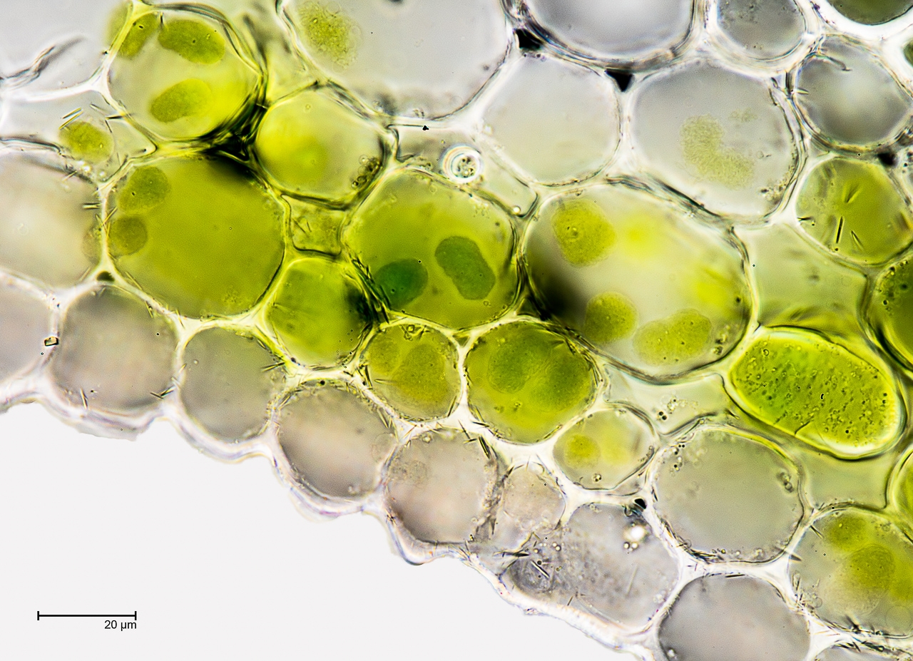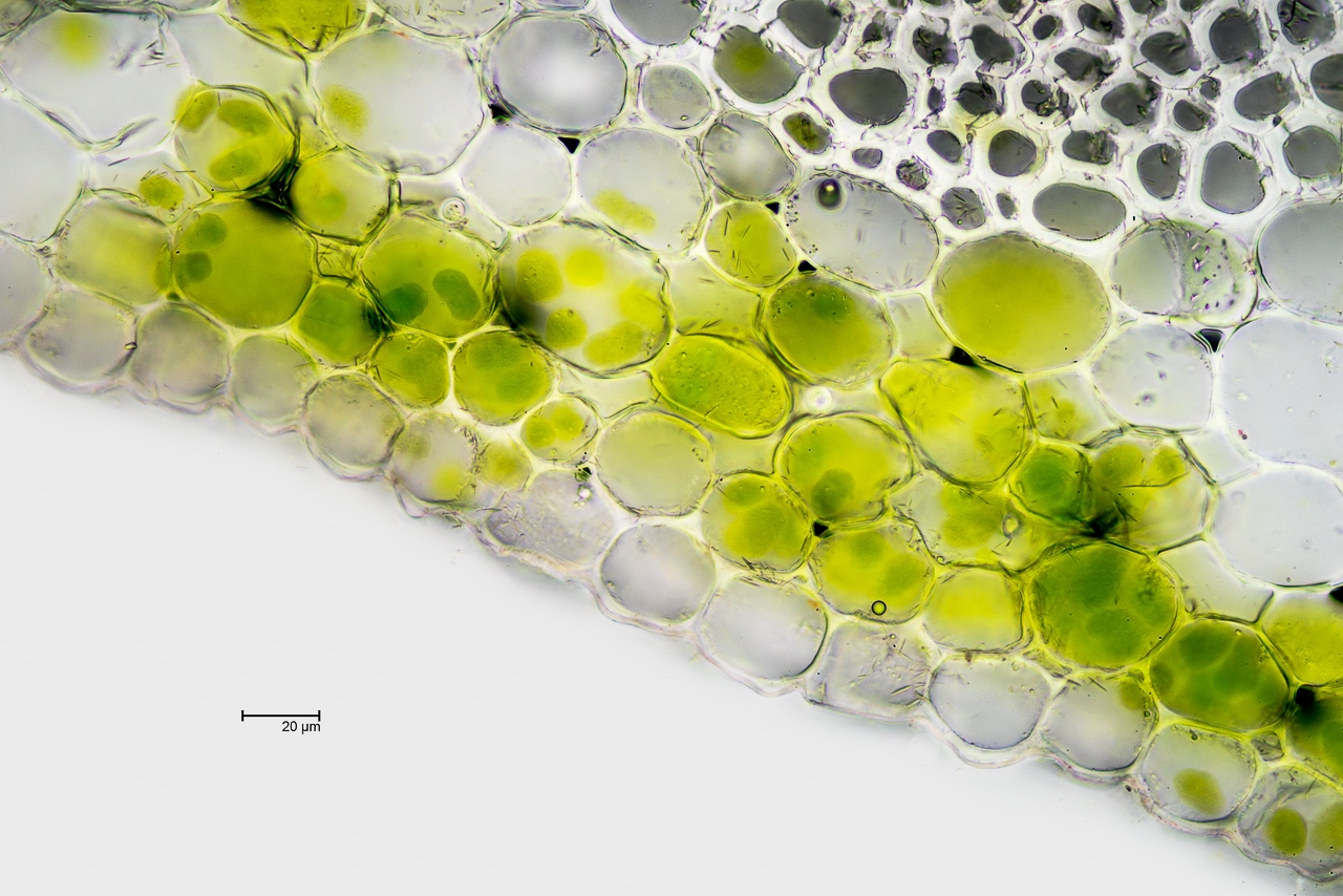 Da die AFE-Fixierung so einem signifikanten Verlust von Chloroplasten führt wurden auch Frischschnitte angefertigt, mit Wasser gewaschen, in Wasser eingedeckt und sofort mikroskopiert. Da die unfixierten Schnitte noch empfindlicher waren als die AFE-fixierten, wurden keine Übersichtsaufnahmen erstellt.