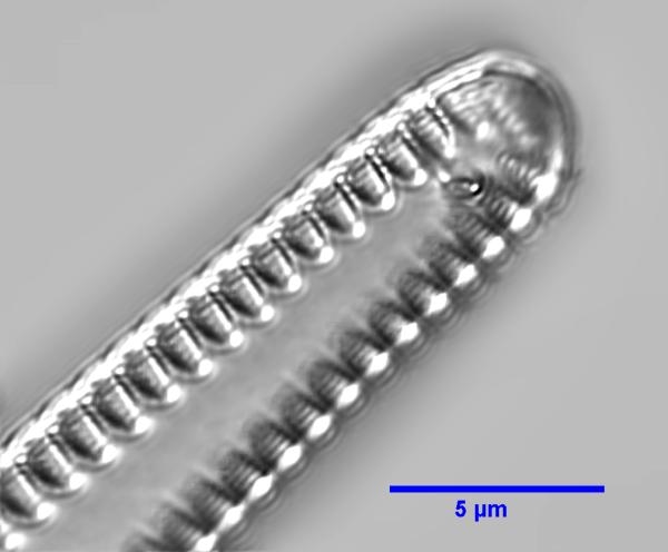 man muss die systematischen Zuordnungen, vor allem, wenn sie auf kaum wahrnehmbaren lichtmikroskopischen Merkmalen beruht, nicht zu ernst nehmen. Deine Zitate belegen das. Was ich viel aufregender finde, ist die REM-Darstellung der eigentlichen Poren, die viel feiner sind, als die groben Durchbrüche, die wir im LM sehen. Das hat mir einer meiner Lehrer im Studium, der legendäre Peter Sitte, 1966 mit gegeben, als ich in seinem Praktikum das erste Foto (einer Diatomeenschale) am Elektronenmikroskop machen durfte (einem TEM). Es sollten dann einige 10 K folgen.