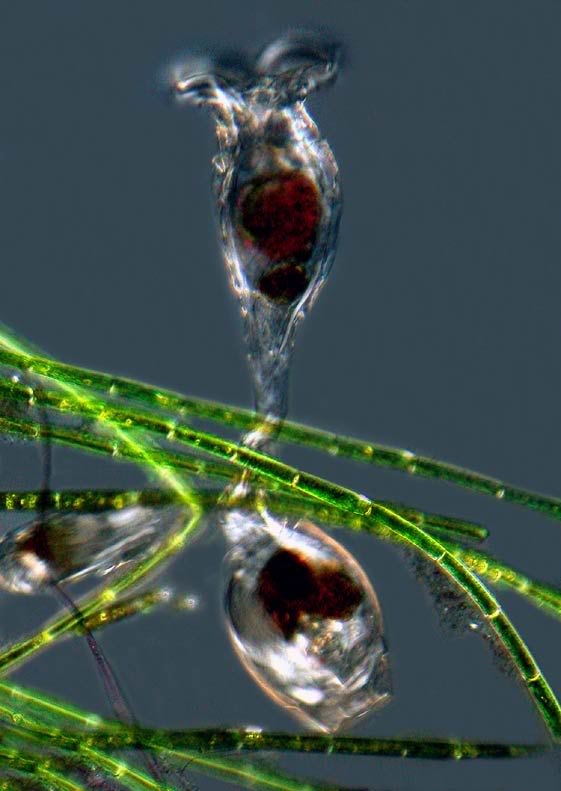 heute habe ich mal ein wenig im polarisierten Licht mikroskopiert und diese Rädertiere aus dem Schulaquarium abgelichtet.