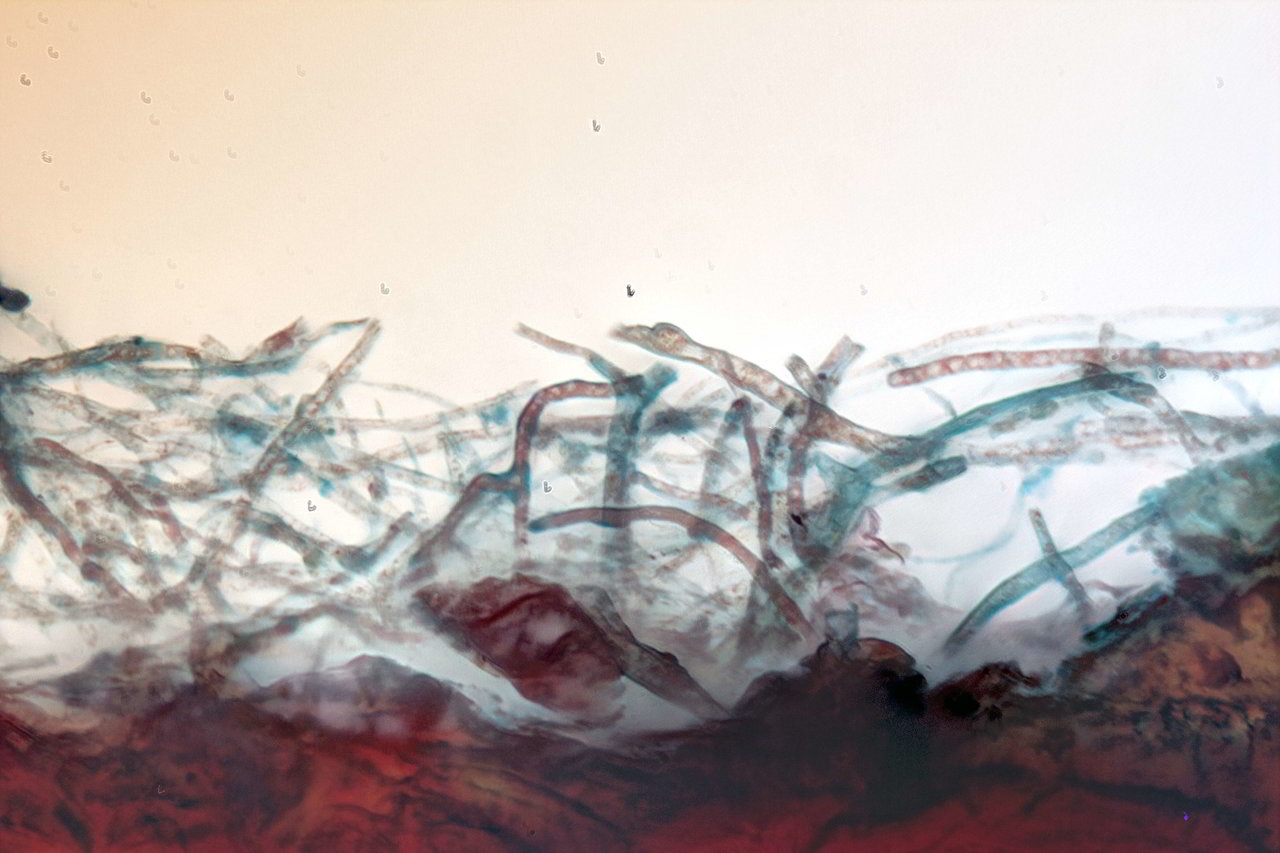 Bild 4: Die gespinstartige Auskleidung der Galle (gefärbter Schnitt)