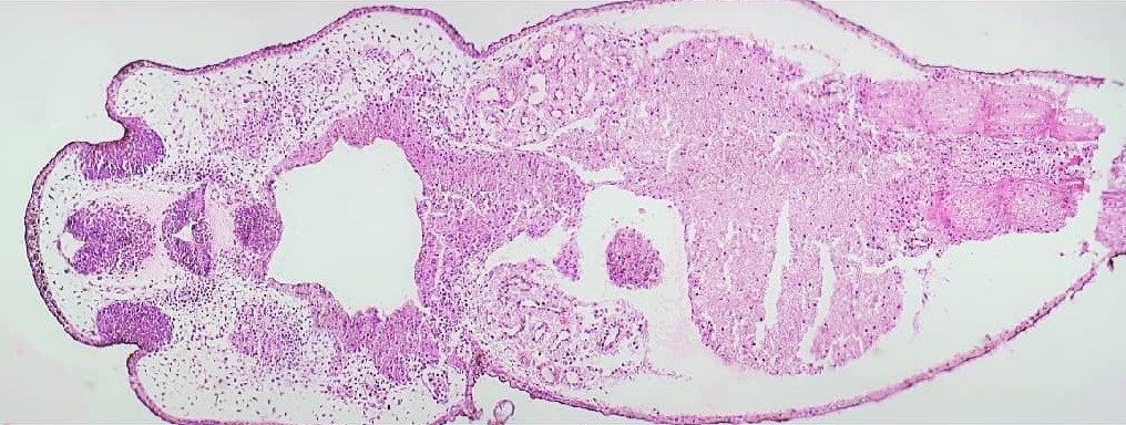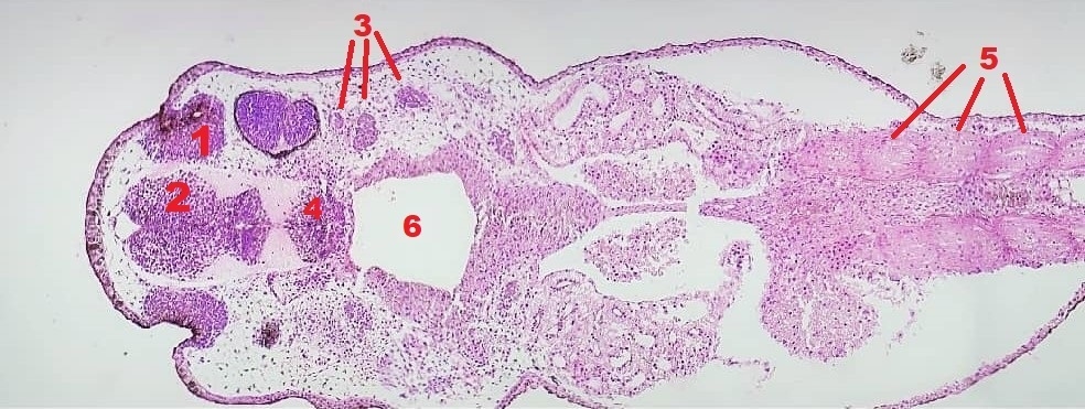 In diesem Artikel zeige ich Schnitte durch eine frisch geschlüpfte Kaulquappe. Man erkennt die Entwicklung einiger Organe. Ich bin bei weitem kein Embryologie-Experte und für Ergänzungen/Korrekturen dankbar. Dieses sehr frühe Stadium der Entwicklung ist der Embryonalentwicklung des Menschen sehr ähnlich.
