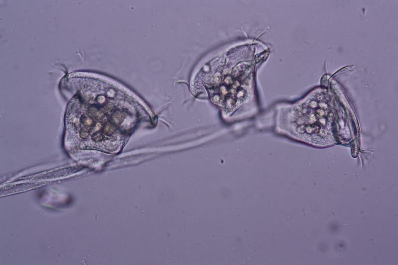 Meine Vermutung: es handelt sich um Strauchtierchen, die größeren Exemplare könnten Makrozooide sein? Wer kann helfen?