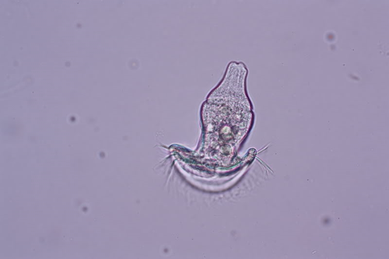 in einem Gartenteich habe ich am Wochende reichlich volgende Wimperntierchen gefunden: