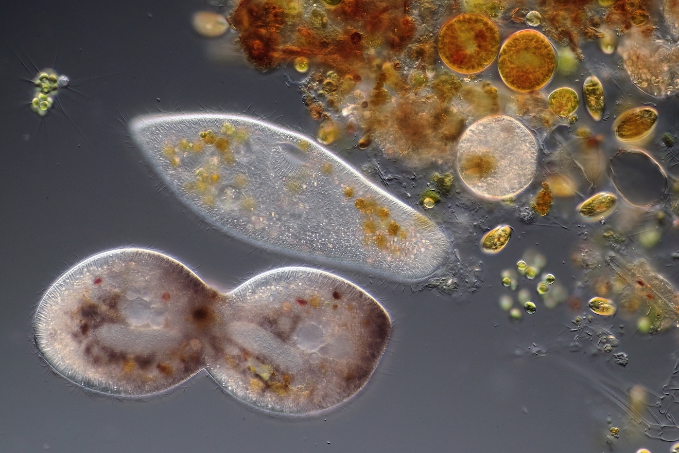 Sehr schön auch das Teilungsstadium. Scheint mir Frontonia acuminata zu sein?