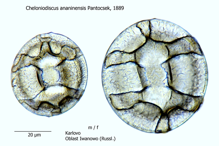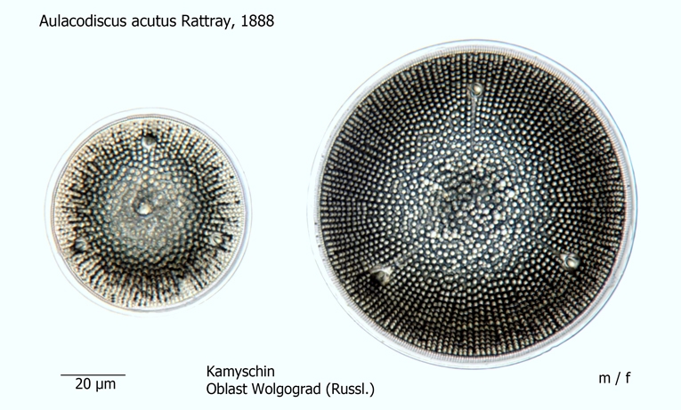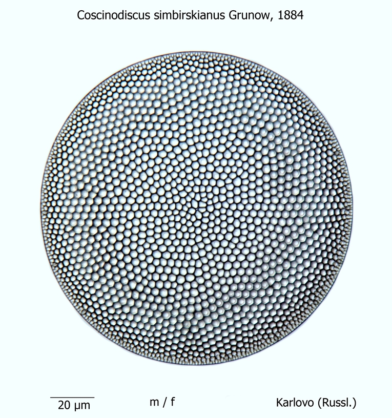 Wichtig ist bei Diatomeen natürlich auch, ob es sich um eine Süßwasser- oder eine marine Art handelt. Auf den oben gezeigten Bildern erkennt ein Diatomist sofort, dass es sich bei m/f um eine marine und fossile Spezies handelt.