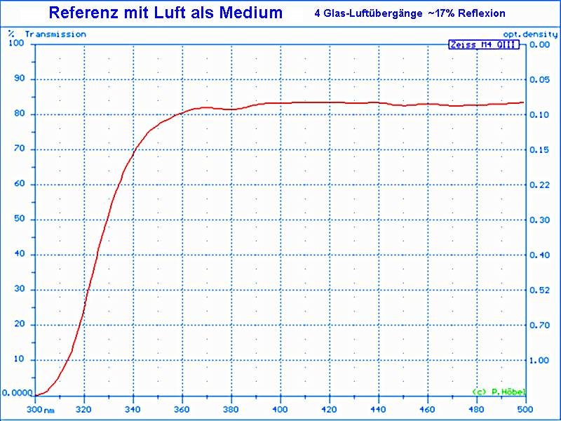 Peter Höbels Diagramme zeigen , dass einige Einbettungsmittel sogar die Transparenz gegenüber Luft in Richtung UV verbessern ,