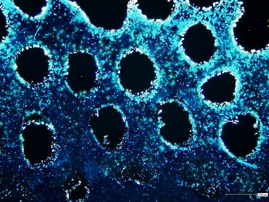 Bild 5: Die Poren in der Aufsicht (Auflicht, Leica NPlan 5x)